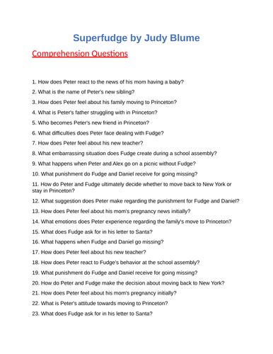 Download superfudge-comprehension-questions Hardcover